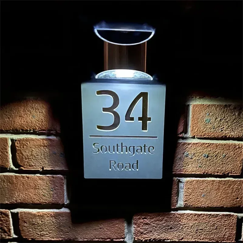 Verleihen Sie der Außenseite Ihres Hauses mit unserem exquisiten Solarleuchten-Hausschild mit Lasergravur eine Note von Raffinesse. Mit einem zweilagigen Hohlraum-Design vereint dieses einzigartige Schild Praktikabilität mit künstlerischem Flair.